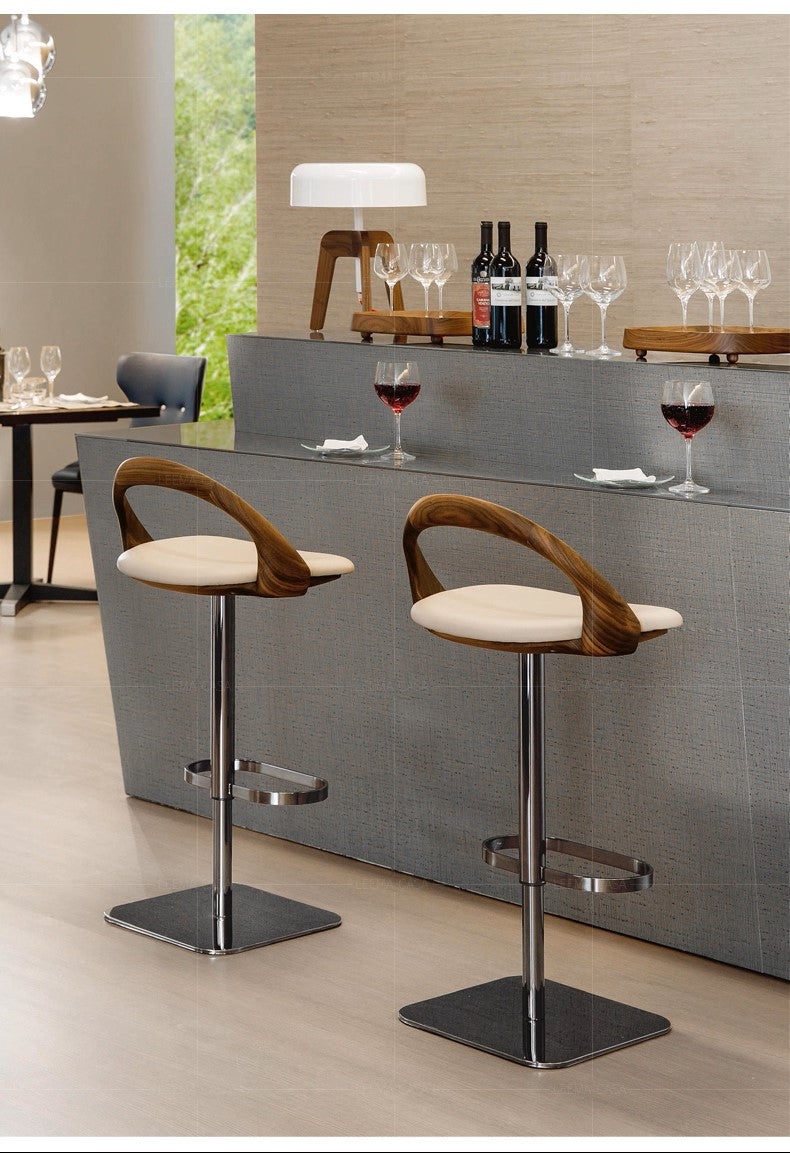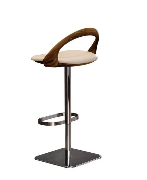 Bring a sculptural, designer feel to your kitchen island or bar with the Siena Loop Back Bar Stool by Getz Interiors. The silhouette is all about contrast: a smooth, upholstered seat in a soft cream tone, wrapped with a curved walnut-look loop back that feels like a piece of modern furniture design rather than “just a stool”.
