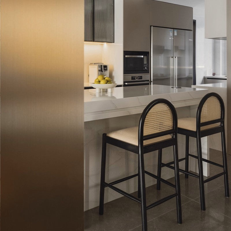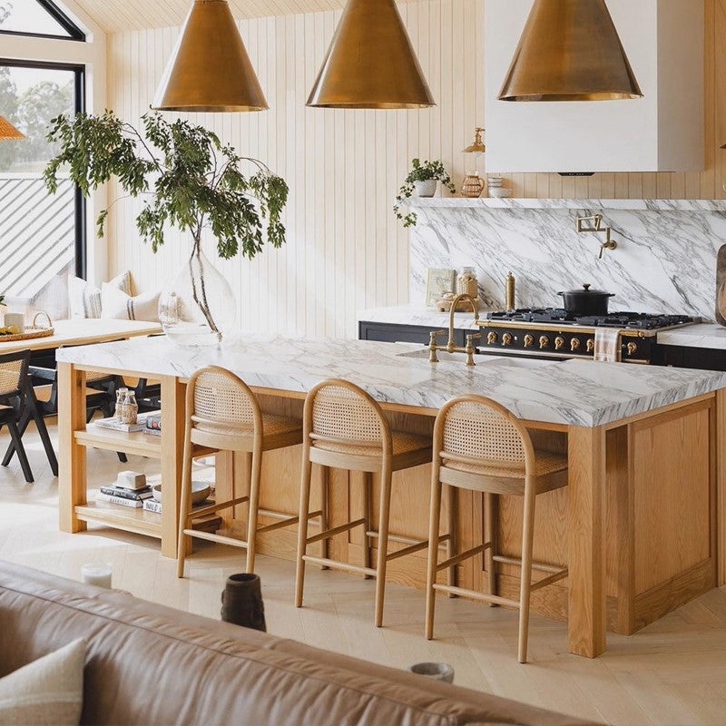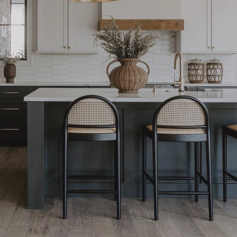 Elevate your kitchen island or home bar with the Cassia Cane Back Bar Stool , an effortlessly refined piece from the Getz Interiors seating collection. Featuring a softly curved cane backrest and woven seat set within a sleek timber frame, brings boutique-hotel elegance and everyday practicality together in one beautifully balanced silhouette.